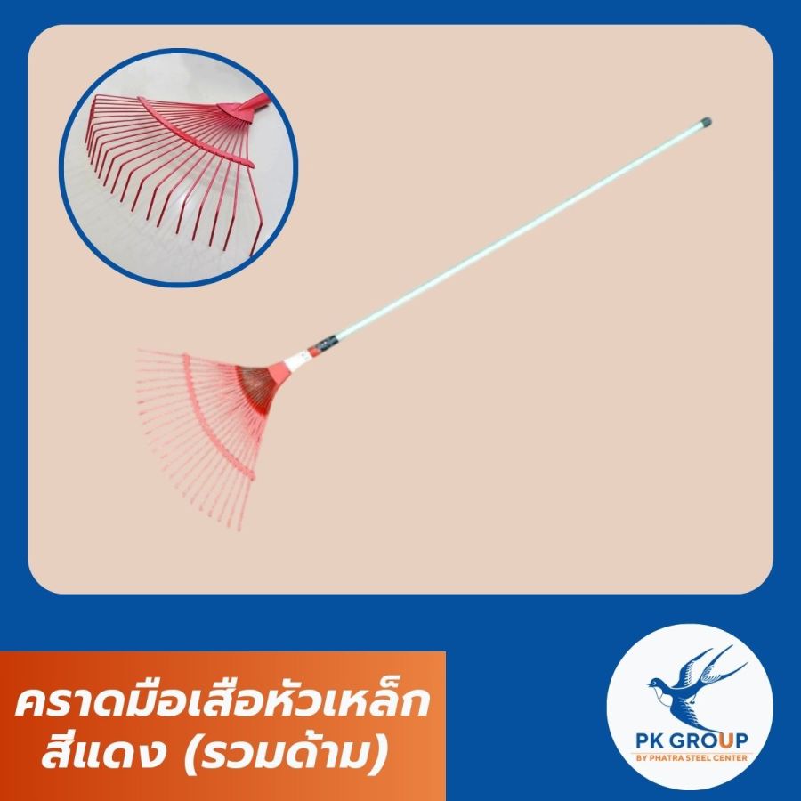 คราดมือเสือหัวเหล็กสีแดง (รวมด้าม)