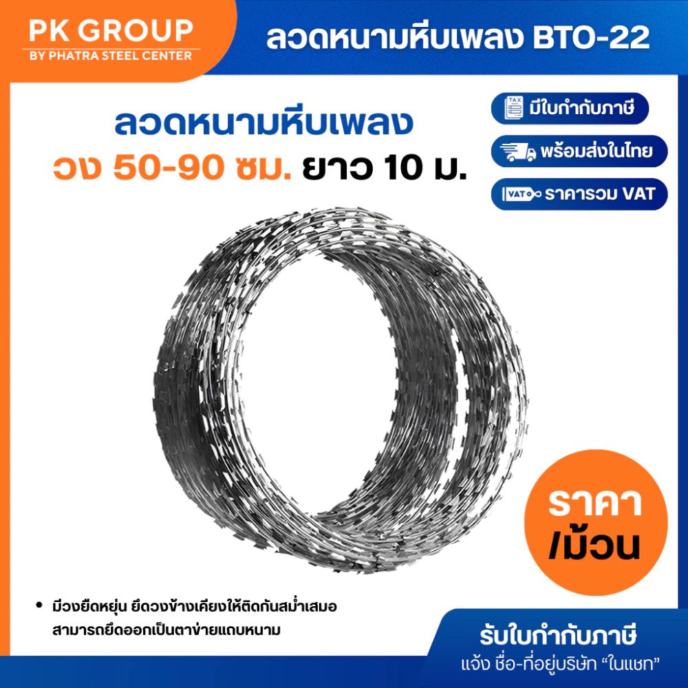 คือ ลวดหนามหีบเพลง รุ่น BTO-22 กว้างเฉลี่ย วงละ 50 ซม. ยาว 10.0 เมตร ต่อม้วน