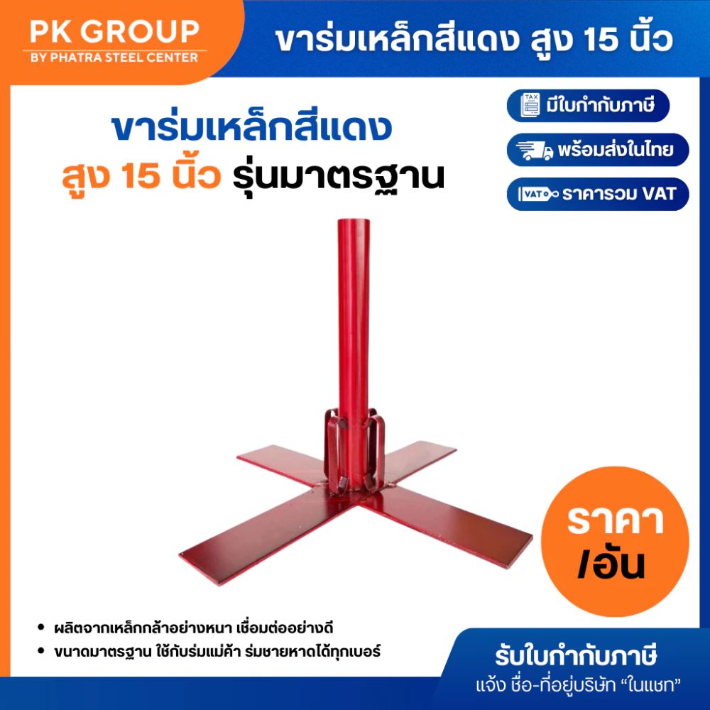 นอกจากนี้ยังรับผลิตขาร่ม หรือสั่งสีขาร่มได้ ขาตั้งร่มเหล็กสีแดง เหล็กปักร่ม ราคาถูก!!