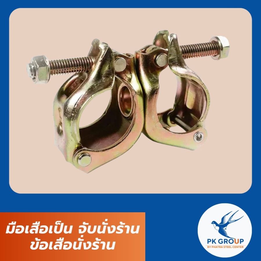 ใช้สำหรับจับโครงนั่งร้าน ประกอบนั่งร้าน ขึ้นโครงเหล็ก ใช้จับท่อเหล็ก ขนาดท่อ 1-1/4" ถึงขนาด 1-1/2" (42มม-48มม.) มีหลายแบบ ทั้งแบบหมุนได้ 380°