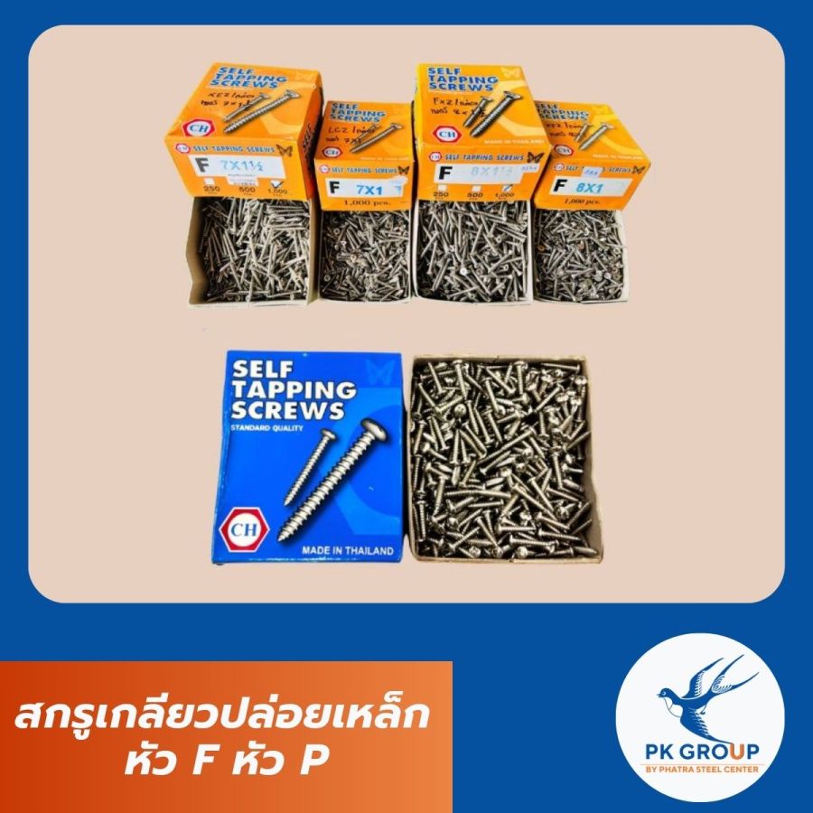 สกรูเกลียวปล่อยเหล็ก หัว F หัว P